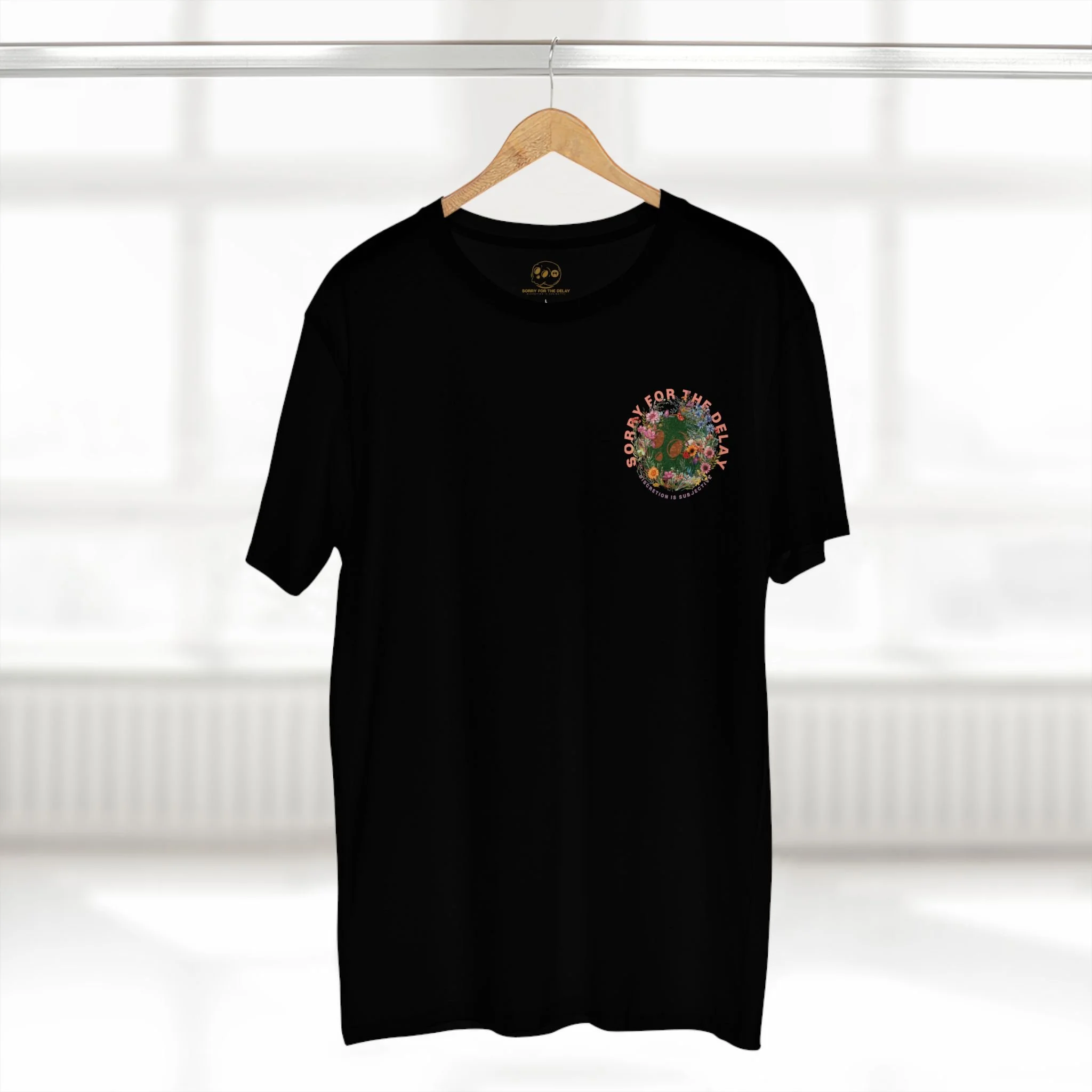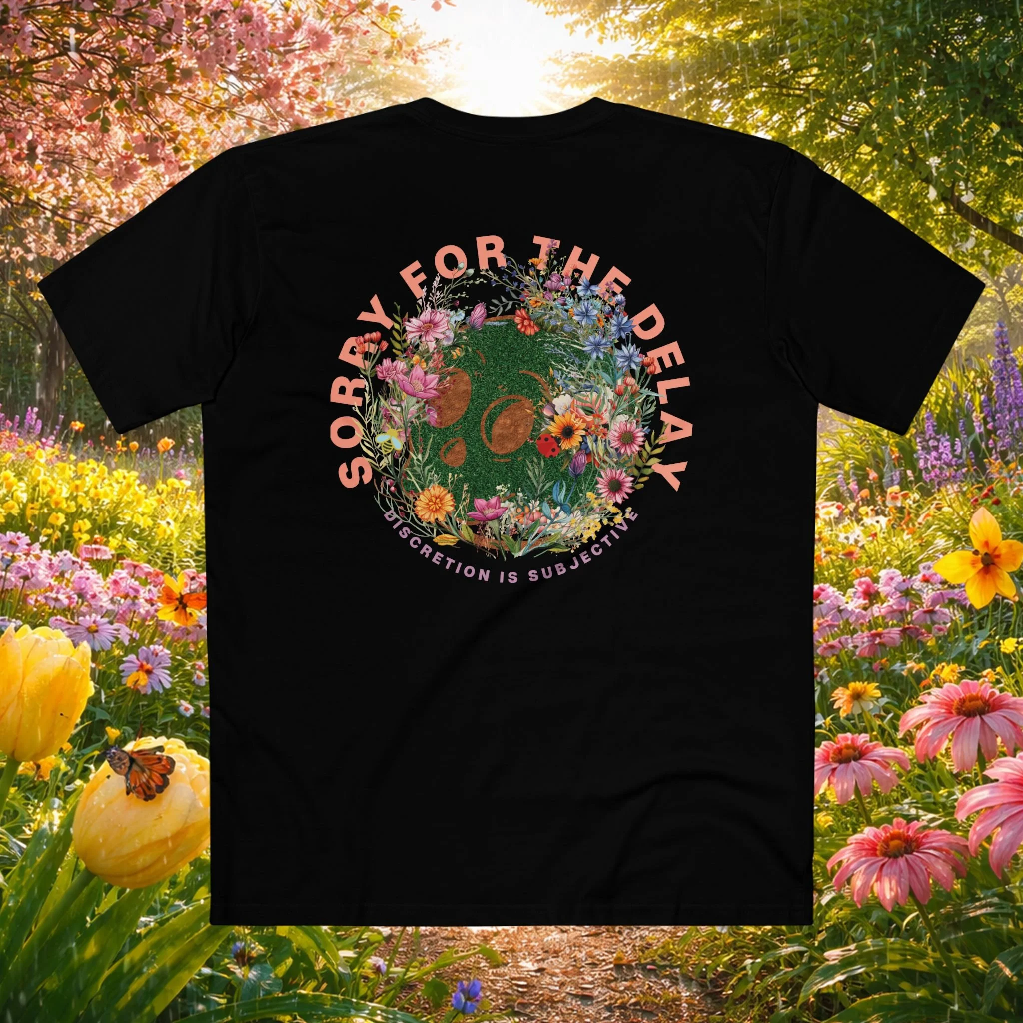 The “Sorry For The Delay | Garden of Delay Collection”- Drop One Of One | The Garden of Delay Collection features the “Blooming Afterlife” limited t-shirt that blooms with wildflowers, insects, and fresh greenery surrounding the brand’s iconic mark, turning the symbol into a living piece of spring. It’s a celebration of growth on its own timeline, where nature and attitude collide under the philosophy that discretion is always subjective.